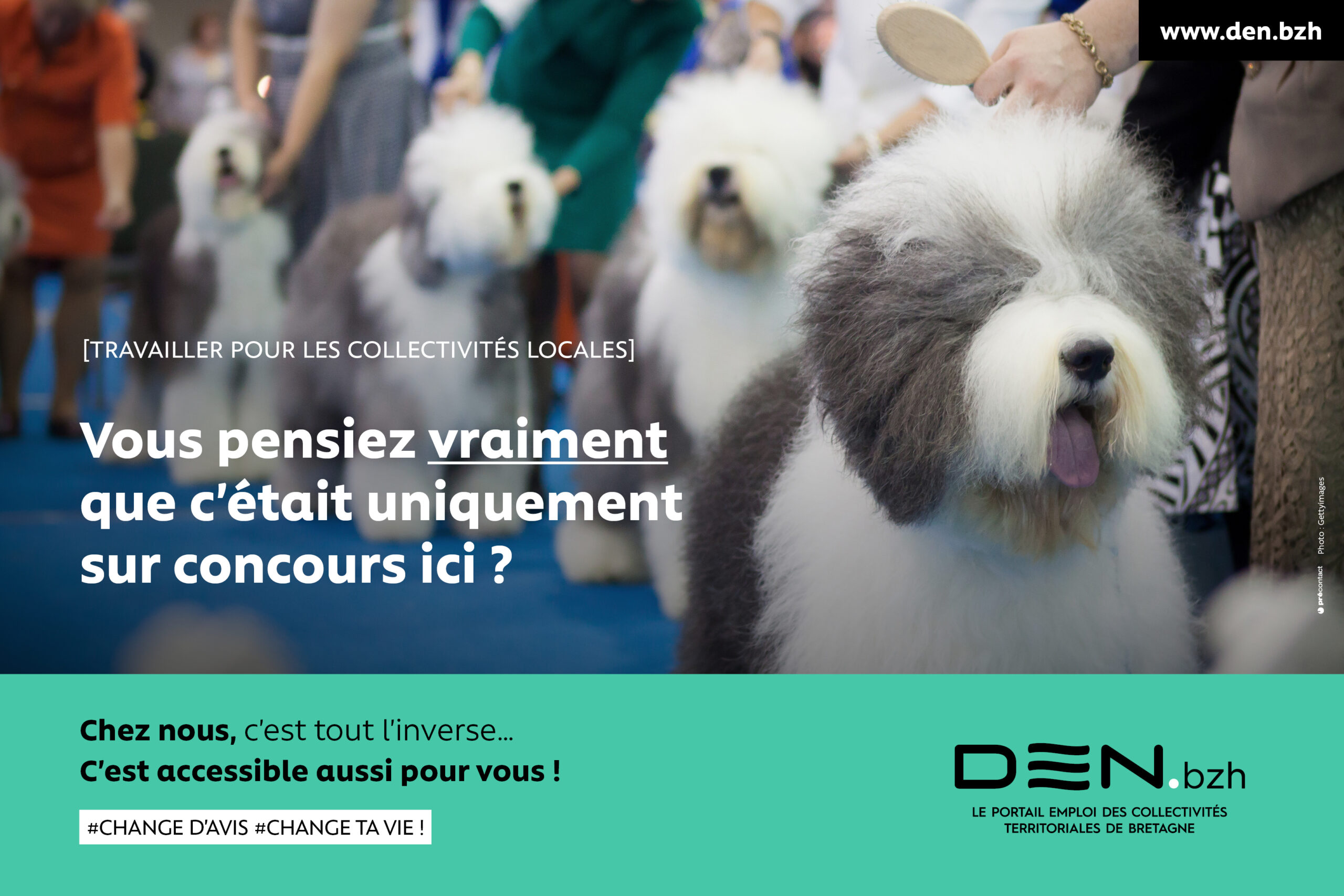Visuel de la campagne de lancement de la marque DEN.bzh de janvier 2023 qui prend le contrepied des idées reçues sur la fonction publique territoriale (FPT). Ici, sur la fausse idée que l’accès à ses métiers ne se fait que sur concours. © Droit réservé : CDG 22, CDG 29, CDG 35, CDG 56 -