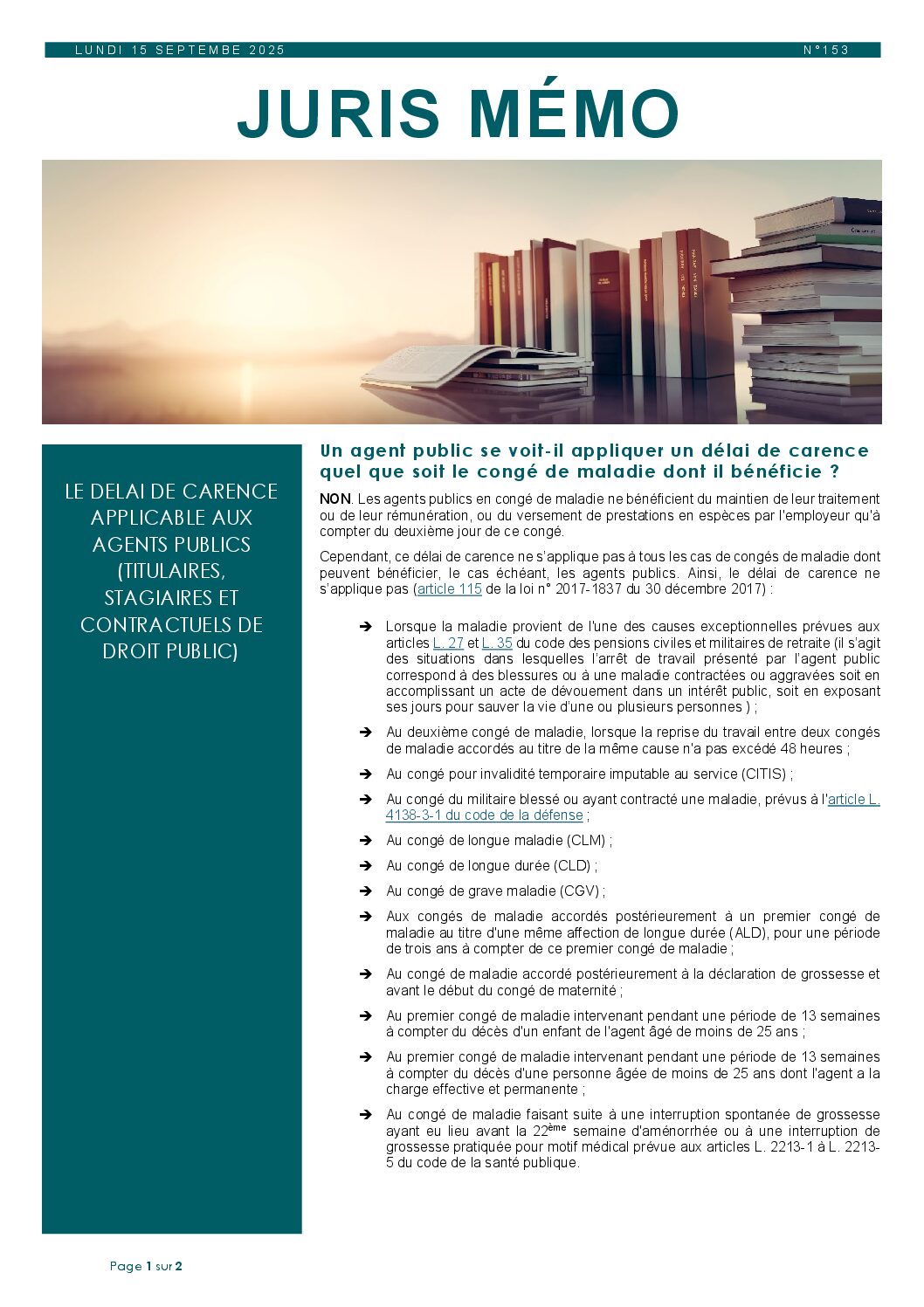 Juris Mémo n°153 : Le délai de carence applicable aux agents publics