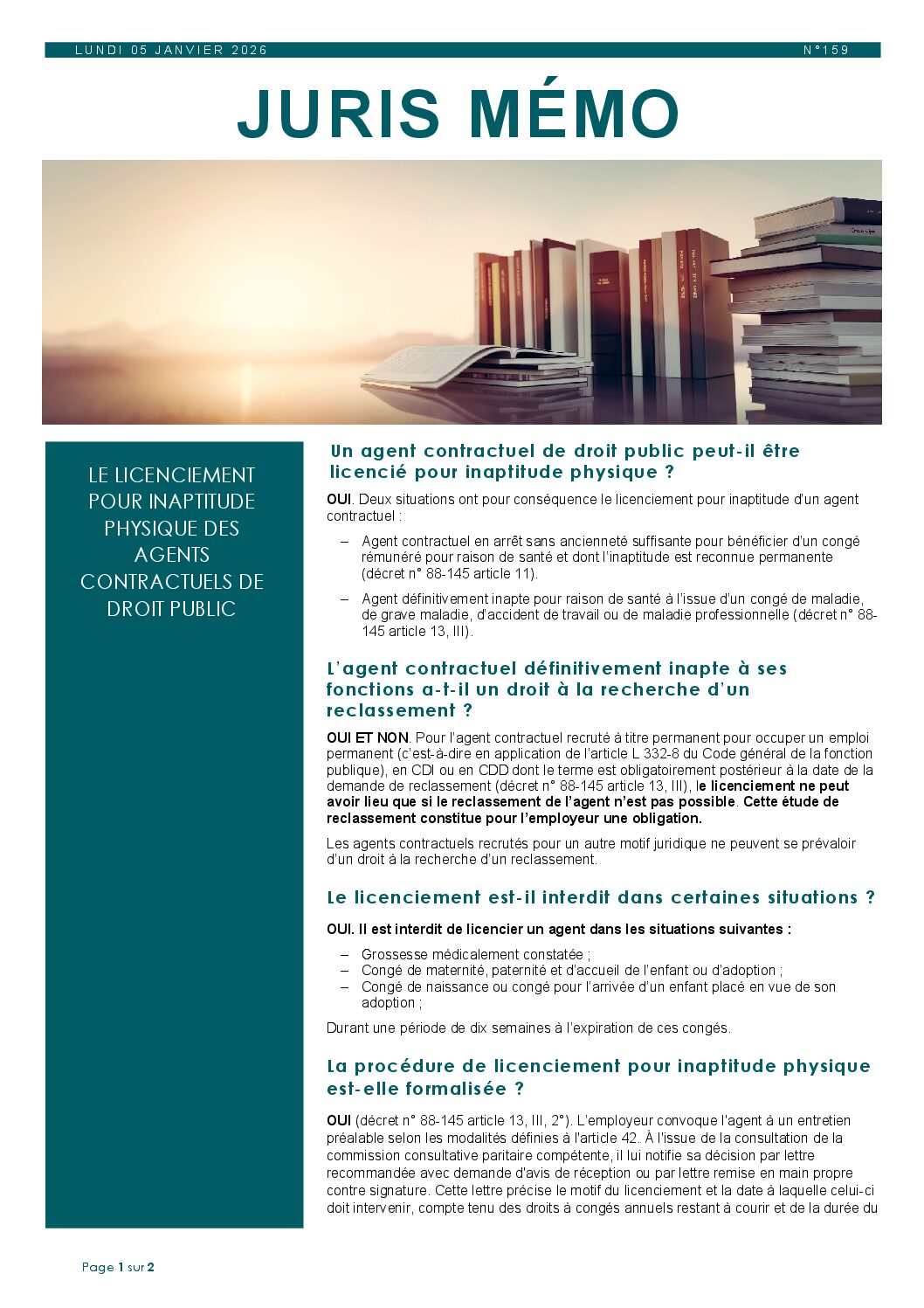 Juris Mémo n°159 : Le licenciement pour inaptitude physique des agents contractuels de droit public