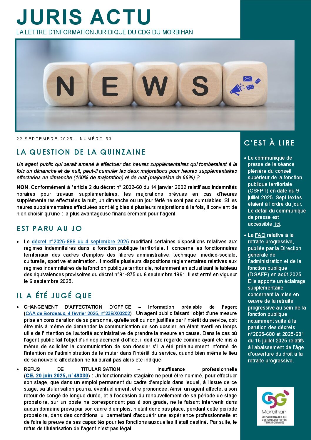 Juris Actu : N°53. Lettre d’information juridique du CDG du Morbihan