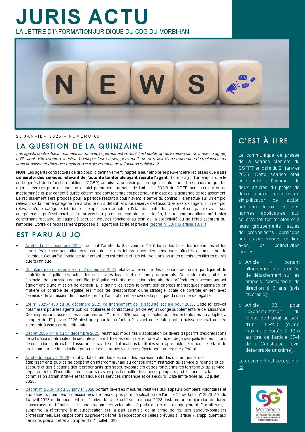 Juris Actu : N°60. Lettre d’information juridique du CDG du Morbihan